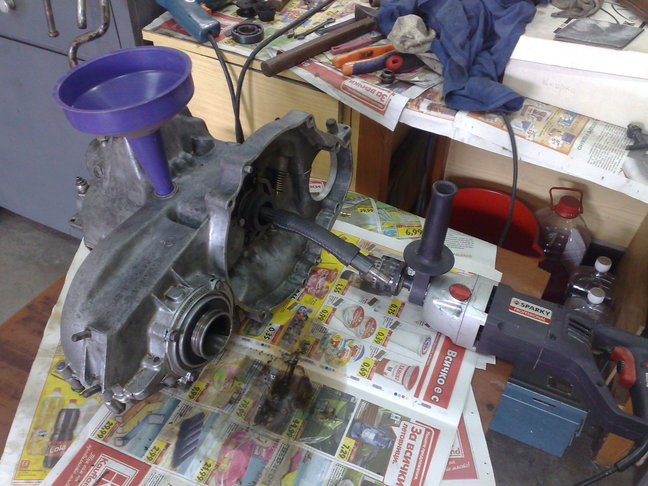 Мисля да взема около 2 литра нафта,да я загрея и налея в скоростната кутия,преди това ще сложа пробката