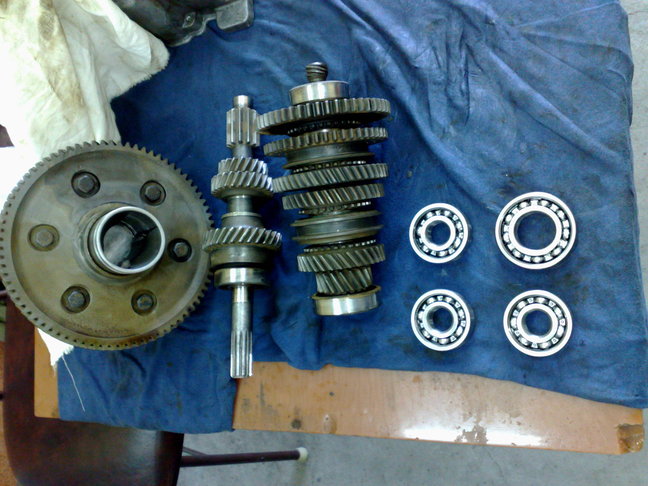 има 2 модела,но ако се наложи да сменям нещо не знам дали има части,аз лично имам само кошничката и не знам от кой модел е.Смених лагерите на единият вал,общо са 4лагера,3 -6304 сложих НРБ ВМЗ, 1-6206 този ще бъде FAG.При мен и четирите лагера са сачмени,при някои кутии.лагера,който е до амбреажната опашка е ролков.Относно лагерите на диференциала са 6013 и са набити много леко към него.Ето малко снимки: