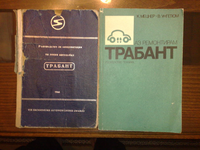 Колеги,днес станах вече собственик на Трабант 600 по документи,самата кола ще я взема като се пооправи времето.Искам да споделя нещо което може би не се е случвало друг път.Колата е произведена 1965г. и през 1968 е купена от сегашния собственик,който е роден 1933 г и днес ми го прехвърли сина му.Такъв собственик аз друг път в живота си не съм виждал,човека е бил толкова стриктен и е записвал всичко което се е случвало с колата от когато е произведена,колко километра и минавал всеки месец,при всяко ходене в КАТ е записвал какво е правил,колко пари е давал името на служителя,номера на стаята,имал е лек удар и е написал името на човека коЙто го ударил,милиционера име адреси и на двамата не е за вярване.Колко и какво масло е слагал всяка година и ред други извънземни записвания,имам оригиналната книжка при закупуването на трабанта,карта на България от 1965 година и ред други документи,първо издание на "Аз ремонтирам Трабант" с оригинална ел. схема.Имам още за споделяне,но сега отивам да видя какви части ми даде човека от мазата.Скоро ще кача снимки.