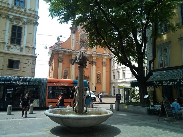 Вторият по големина австрийски град ми хареса и няма как да е иначе, щом през него минава река. Река Мура извира от Алпите и се влива в Дунава. Има красива архитектура и дворец с пауни.
