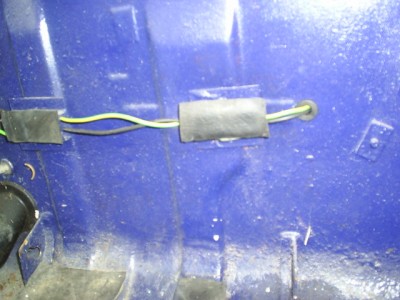 Плюса за уреда взех от бобината, така че като е на контакт и като работи двигателя да отчита уреда. Сигнала се взима от поплавъка, а масата от моторчето за чистачки - на него вляво има отредено място, където да пъхнеш кабелната обувка. Точно до кафявата жичка - маса на разходомера.