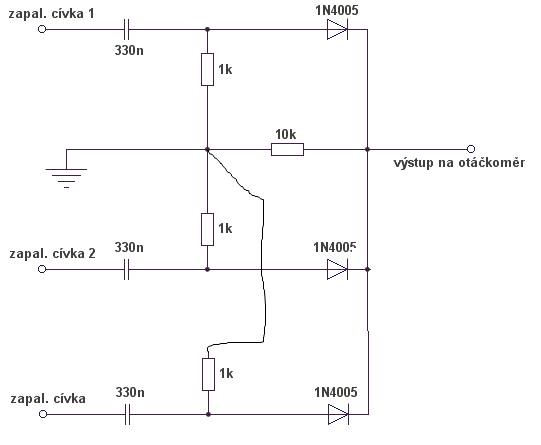 При което аз реших че имам избил диод и ги подмених изцяло, като дори запоих три диода за да взимам сигнал от трите бобини и оборотомера да работи в режим 6 цилиндъра. Да ама не - закачен само към едната бобина показва обороти на половина-ОК, закачен на двете бобини ПАК показва оборотите наполовина??? Закачен към трите бобини - не показва нищо. Консултирах се с бат Наско и той каза че това е така защото като закача и трите бобини се получава момент в който трите чукчета са затворени и оборотомера го отчита като един дълъг импулс т.е. веригата е постоянно затворена и затова не отчита нищо.