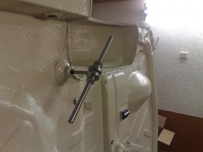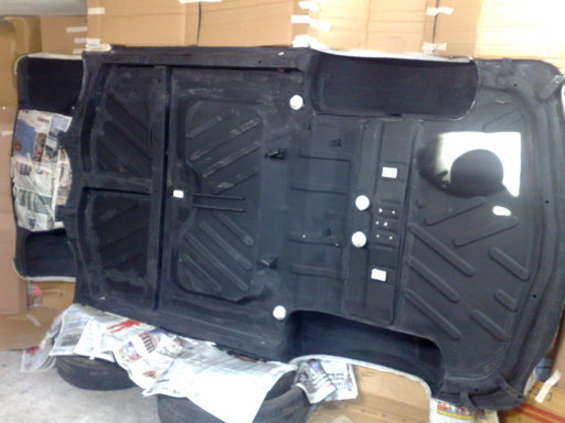 Здравейте.малко информация по моя проект.Облепих пода и е готов за ръсене с шагрето.Пробих всички необходими отвори към кухините и проверих за последно как се движат седалките в подовите релси.Ето и малко снимки: