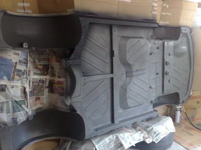 Днеска завърших бояджийските работи по пода на колата,минах с акрилна боя и ще започвам да монтирам задното окачване.