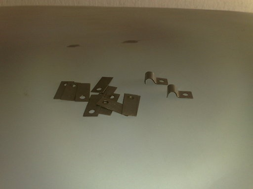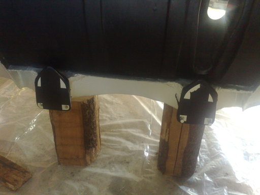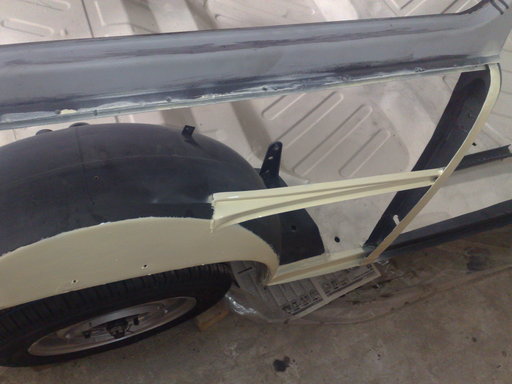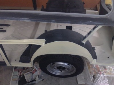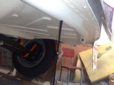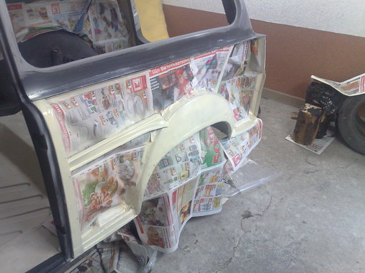 Здравейте колеги,днес боядисах със спрей задните подкалници,там където ще ляга калника и няма да може да се боядисва след това, вече е готово за слагане на самите калници. Изрязаха ми от неръждавейка 0.5мм.дебелина и си направих скоби за захващане на тръбичката от спирачната помпа до задния мост,ето и снимките: