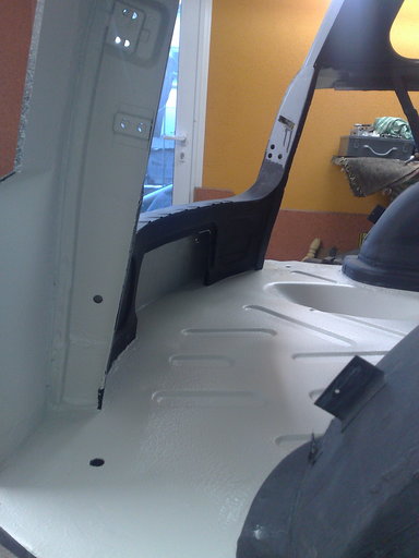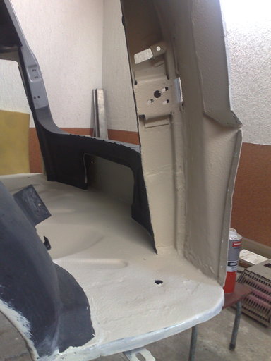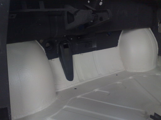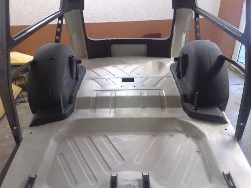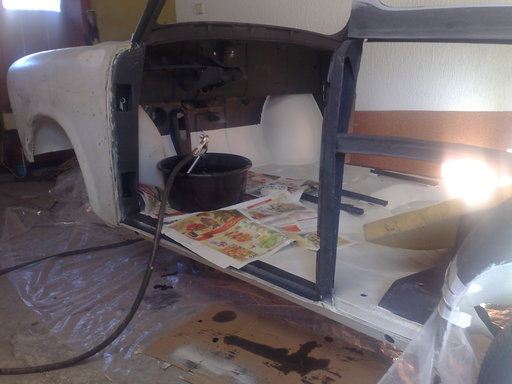 Здравейте колеги,в последно време съм много редовен с качването на снимки,ето и днешните. Наръсих с шагре вътре пода и преградата към двигателя само там където няма да се вижда.