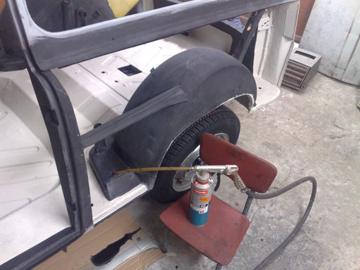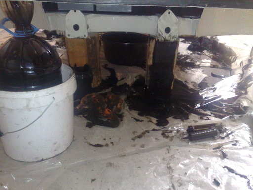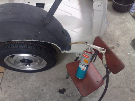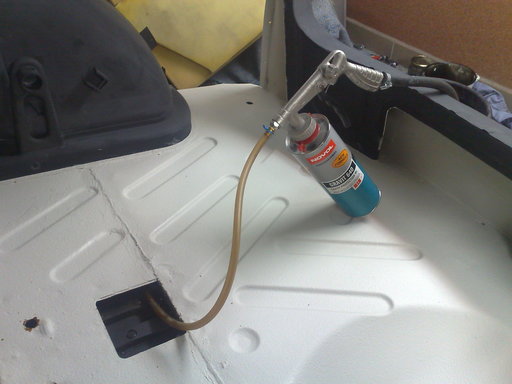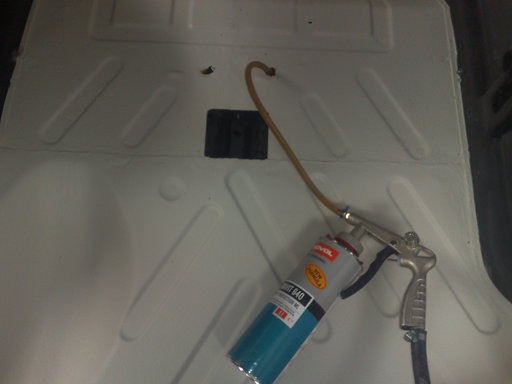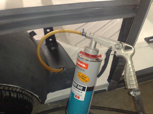 Здравейте колеги,днес беше един мръсен ден...пълнене на греди, рога и други кухини с отработено масло .Преди това застлах с найлон под цялата кола ,прецених,че е по добре да го направя сега а не когато вече е боядисана колата.Реших ,че с пистолета за шагре ще постигна добър ефект и налягането ще облее всичко от вътре.Използвах и спринцовка да напълня кухините максимално в най горната точка,като цяло мръсна работа,но си заслужаваше усилието.Преди това запуших всички отвори от долу и като цяло побра около 18-20 литра отработено масло,като наливах всяка греда по отделно.Смятам,че това му е достатъчно това ще бъде за сега.Малко снимки: