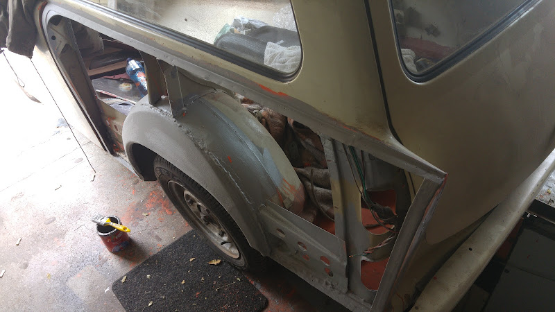 Залепих отново задния ляв калник. Вече фугите ми харесват. Продължавам с вратите :)