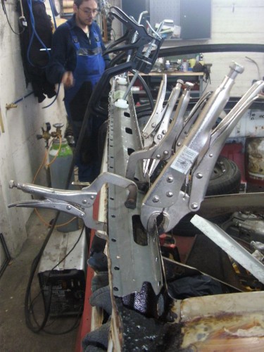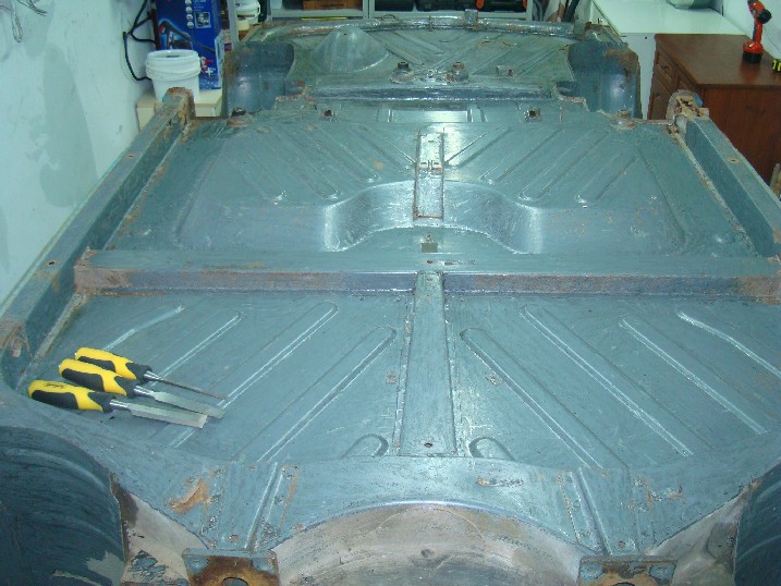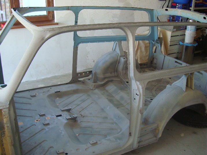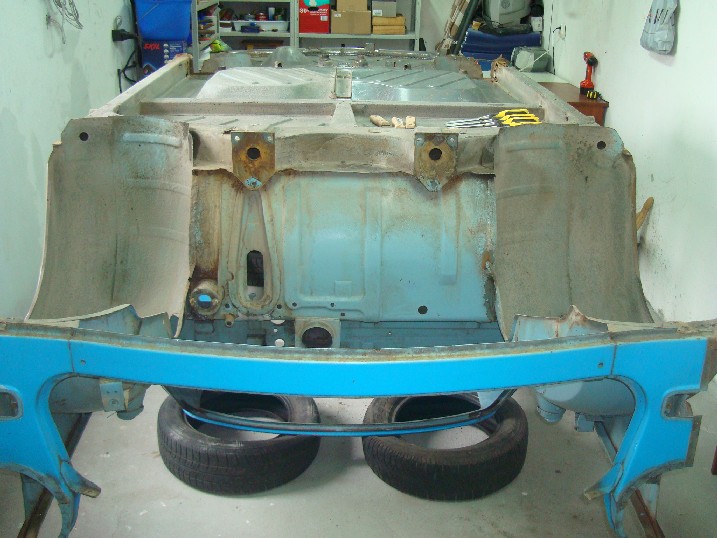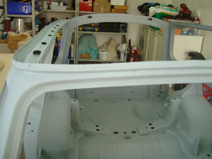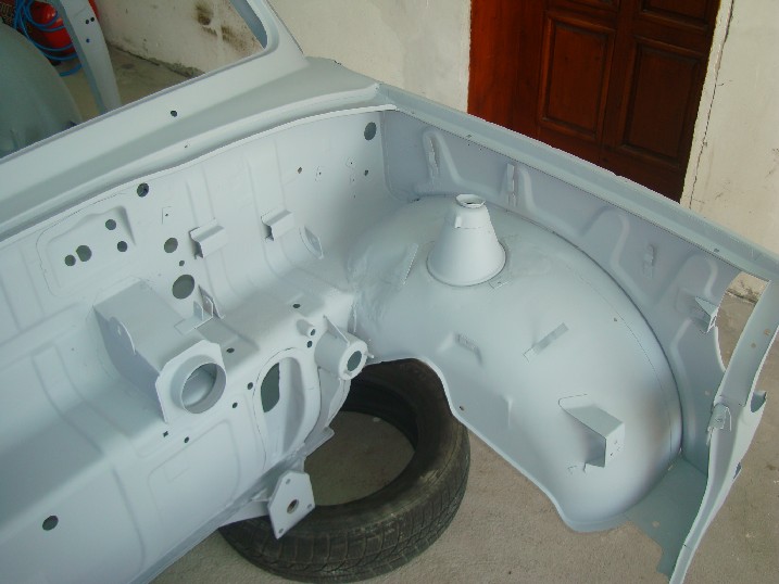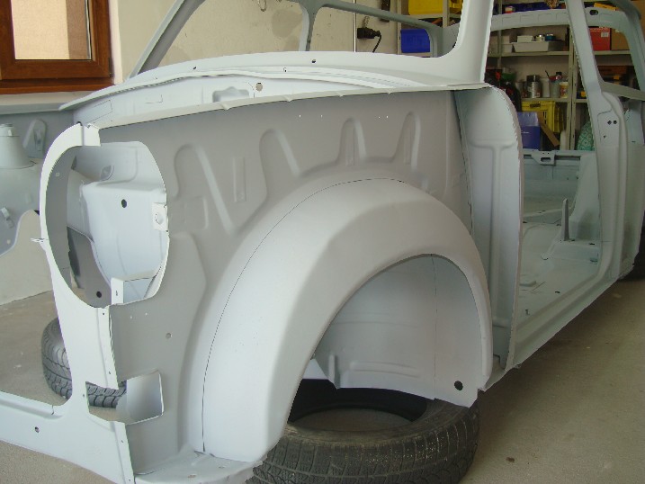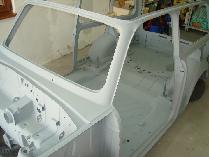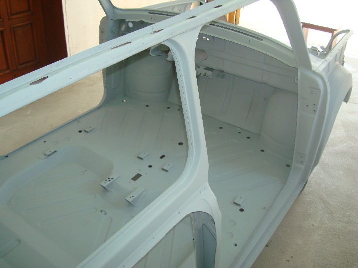 Да ви се похваля! От неделя металната конструкция на трабито доби нов вид, но не без помощта на Вълето, с който грамотно отстранихме с СО-то и ъглошлайфите абсолютно всички пробойни по скелета, цъфнали след песъкоструйката. И с кръпките мисля, че се справихме блестящо, нищо че ни отне много повече от заплануваното време. След зачистването на заварките дори успяхме да нанесем и първата ръка акрилен грунд и то след като съм минал всички ръжди с преобразувател за целта. Сега мога да отдъхна, че съм направил важна стъпка напред. Ето какво според мен предстои да свърша в близко време. 1. Да запечатам дъното с шагрен 2. Да мина с кит навсякъде където личат заварки и кръпки 3. Да мина всички фуги с полиуретан PU-50, освен ако някой не ми даде друг съвет 4. Да обработя отвътре праговете с каквото трябва - дайте идеи! 5. Да мина втора ръка грунд и едва след това да се захвана с врати, кори, таван, капак...