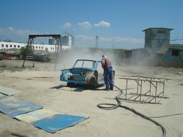 Да си призная, доста се подвоумих за пясъкоструйката, нищо, че е само на 300 метра по пряка линия от гаража ми. Вчера най-после взех окончателно решение да закарам трабито да го поизтъркат. Като се замисля, каква реставрация ще е ако не спазя цялата тази последователност. Знаех, че ще цъфнат дупки, но пък ако намеря кадърен изкърпвач, защо да се кахъря. От туй трябва да стане класен трабант и толкоз!