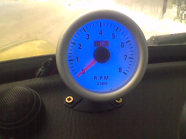Здравейте ! Наскоро си купих оборотомер.Цена 19 лв от магазин "Внос от Холандия".Той е маде ин чина,бял циферблат,разграфен до 8000 обр.,свети мек син цвят и има от задната страна копче с три позиции-846-това са броя на цилиндрите.Накарах го да заработи с помощта на балдъзата ми която е завършила "жичкажийство".Така-сложих го прибързано близо до километража.Няма естетически вид-исках да го сложа на мястото на економайзера,но дупката е голяма макар и с малко.Самият економ. е на боклука-ако можех да му взема стъкълцето и може би задното капаче...Не ми взема очите нощем.Купих си две пищялки (6,90 лв комплект) за отпред.Звука е приятен (не евтин).