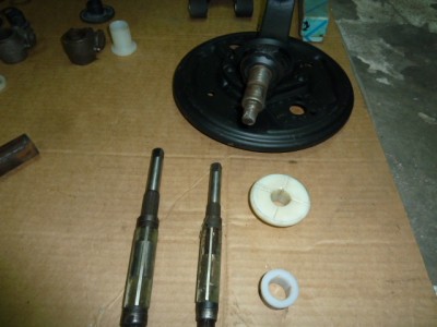 Втулките ми са изработени от полиамид много здрав материал, след малко раиберене бяха набити.Предното окачване е готово.Ще пусна още малко снимки тия дни , взе да става много хубав.