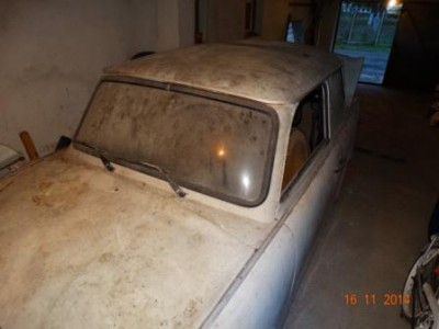 Здравейте, След преравянето на всички чекмеджета ключовете се намериха на нелогично място. По някаква си необяснима причина се оказаха в сестра ми. Сега слагам снимки, за да придобиете представа с какво начинание сме се захванали. Вече постигнахме напредък. Напомпихме гумите. Обезвъздушихме спирачките. Промихме резервоара и кранчето за гориво. Сменихме маркучите за гориво. Свързахме прегризаните кабели и чудо - "Траби"-то запали след над 10-годишна почивка. Всички светлини, дори и тези на таблото, работят с изключение на десния преден мигач, на който учудващо му липсват крушката и отражателя (къде ли са ги завлекли мишките; не вярвам да си похапват стъкло). Дори работи и датчикът за разход на гориво. Следващата стъпка ще са седалките и премахването на ръждата вътре в купето.