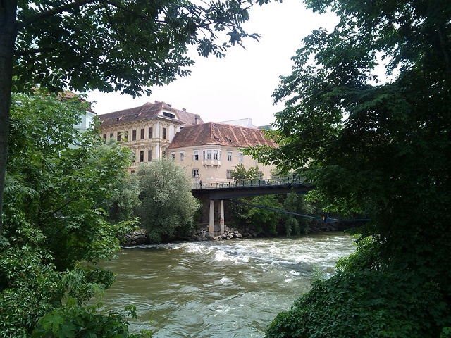 Вторият по големина австрийски град ми хареса и няма как да е иначе, щом през него минава река. Река Мура извира от Алпите и се влива в Дунава. Има красива архитектура и дворец с пауни.