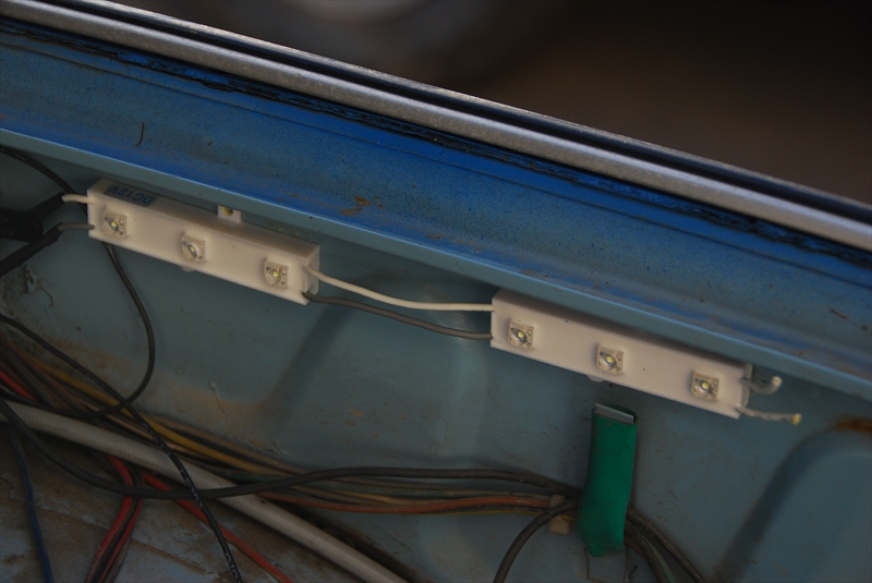Колеги ето ги и мойте идеи за осветление. В купето съм сложил лампа с 4 крушки и свети много добре.Разположил съм лампата посредата на тавана отзад ,за да се разпространява светлината равномерно. В багажника съм сложил плафона от купето като към него залепих от двете му страни плексиглас прозрачен ,за да се получи затворен обем и да не се разсейва светлината. В двигателния отсек поставих светодиодни блокове с по три диода всеки, сложих два броя (съответно от вътрешната страна на левия и десния калник).И смятам че свети много добре.Тези диоди могат да се използват и за купето.Много са компактни лесно се закрепват.Прилагам и снимки на осветленито което съм направил.
