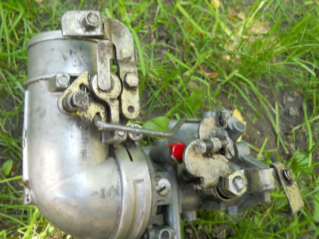 Колега,шума може да е от доста неща,както и да нямаш малки обороти заради повреда в двигателя.Пробвай първо да изчистиш жигльора за празен ход,за да разбереш ще дойдат ли малките обороти устойчиво.Иначе жигльора се намира под болта маркиран с червено.Отвива се с ключ 11 и след това с права отверка самия жигльор и се почиства с тънка медна тел."мързеливия" начин е сваляш само болта и продухваш с помпа,или компресор,като продухаш,оттам трябва да прокапе бензин.