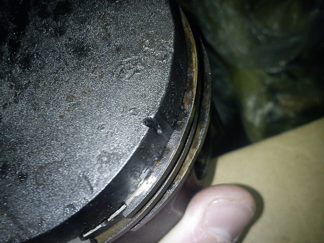 Благодаря Ви за бързите отговори. Аз съм далеч от истината :) 3,2 атмосфери, при не добре загрят двигател. В студено време по- трудно пали. Така, че съм склонен да вярвам на това, което мерих. Още повече стария ми двигател беше шлайфан с нови бутала и сегменти, но се разтропа коляновия вал и една игличка от игления лагер се бе вкопала по стената на буталото до първи сегмент. Сегашния двигател го взех и дадох моят, разтропания, обаче си свалих буталата. И сега мисля да купя нови сегменти и да шлайфам и да сложа мойте бутала. Прилагам снимка на надраното бутало, мисля да си ползвам него, но с нови сегменти.