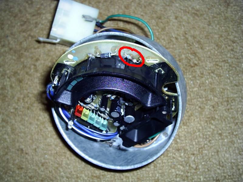Откакто имам Вартубрг се опитвам да си направя разходомера да работи, но без особен успех. Когато си купих първия Вартбург разходомера му не работеше, смених му турбинката и проработи, но само за известно време, след което пак се развали. В момента имам може би 4-5 турбинки, 3 броя светлинни уреди за таблото и 2 Вартбурга. Пробвал съм всякакви възможни комбинации между тях, но без резултат. Докато карам, без значение колко газ съм подал, на разходомера свети само първата лампичка и втората съвсем бледо. След толкова сменени турбинки реших че проблема може да е в светлинните уреди на таблото и ги разглобих. Направи ми впечатление, че и на 3-те уреда този резистор който съм оградил на снимката се е "изпекъл". От изгорялото не мога да прочета маркировката. Някой има ли идея колко ома е?