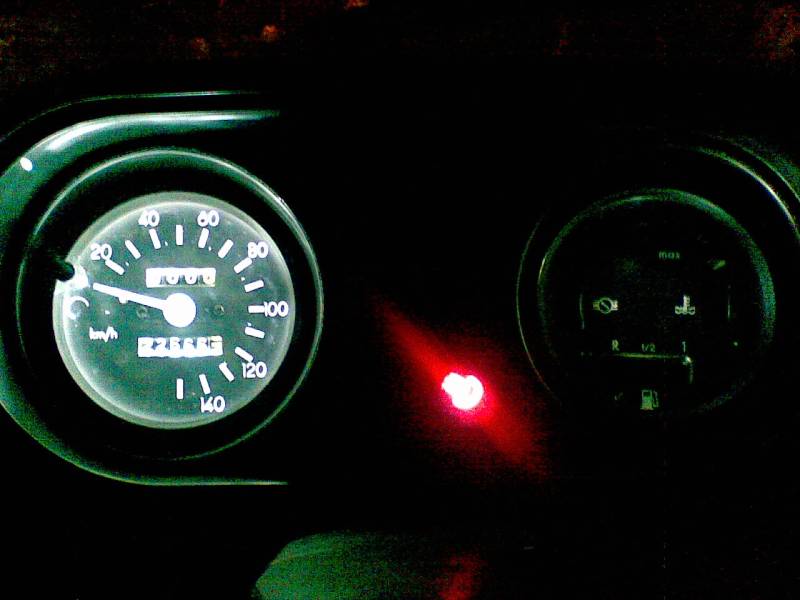 На първата снимка изглеждаше, че свети дори по-слабо и от оригиналното. :D На мен ми харесва как стана. Светлината е равномерна и много ярка, но не чак толкова че да дразни. Ако бях сложил червени или сини диоди, сигурно щеше да е доста гадно. Преди си бях правил експерименти с едни сини диоди от запалки и беше станало отвратително(да не кажа циганско). Не осветяваха равномерно и ме дразнеха много вечерно време. Сега използвах от тези, които са с голям ъгъл на светене, а не концентрират светлината в точка. Облепването на вътрешността на километража с готварско фолио, колкото и да е примитивно, също помага доста. Дори и с обикновените крушки и фолио, осветлението се подобрява значително.