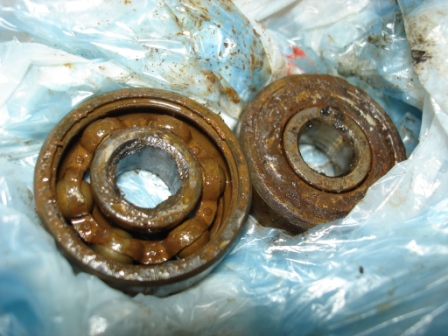 Оригиналните лагери от завода производител са БЕЗ КАПСУЛОВКА. Точно така - има една мръсна тактика, наречена "отражателна шайба". Това е една избомбена шайба, която се намира точно преди първия лагер (този до фибъра), върти се заедно с вала и работи като малка турбинка - ако върху нея попадне вода, центробежните сили веднага я изхвърлят настрани. Така че ако ще сменяте лагери на водна помпа - не махайте шайбата, дето наподобява виетнамска шапка.