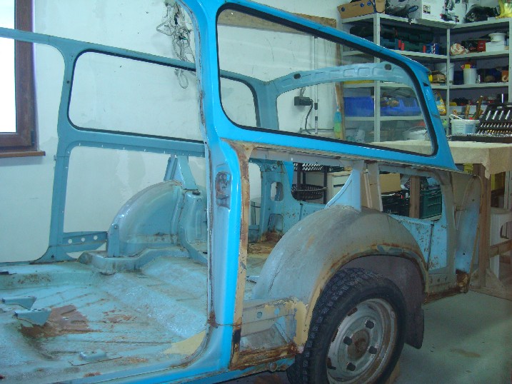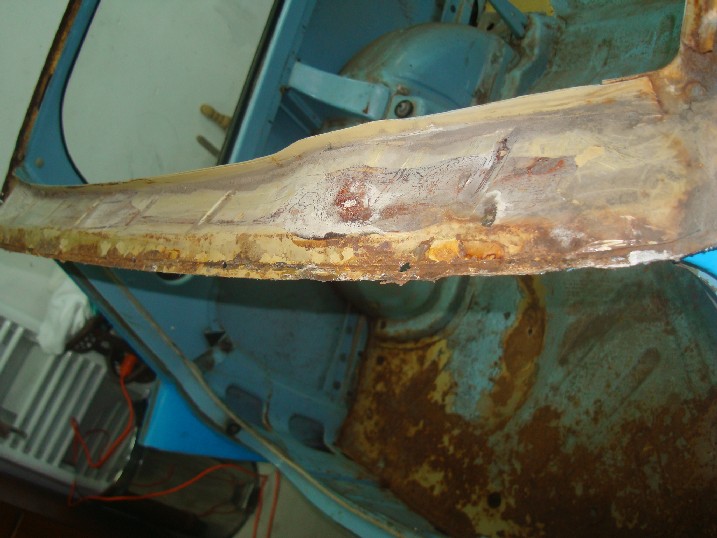 Позволих си да демонтирам тавана. Не ми се щеше да го правя, но някой от лайсните му бяха закрепени с по-дълги самонарезни винтове, които са пробили на две-три места рамката и оттам е тръгнала ръжда по снадките на отворите за вратите. Когато го свалих, цялото външно надлъжно протежение под основата на тавана бе като дантела от ръжда. Някой се е опитвал безуспешно да го уплътни със силикон. Кому е притрябвало да сваля тавана? Така и не можах да установя видими причини да го прави. Това само ще ми отвори допълнително работа. Ако не бях предприел таз интервенция, сигурно ръждата щеше постепенно с времето да превземе цялата горна конструкция. Вътре в самите колонки няма да мога съвсем да я предотвратя, но ще се опитам да въздействам на всичко видимо и достъпно за ръка и инструмент.