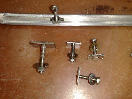 от неръждавейка планки с отвор в средата.След това нарязах резба 4мм. и завих болт нераждавейка,изпилих част от главата и се получи перфектно,поне за напред няма да имам проблем с ръждата.