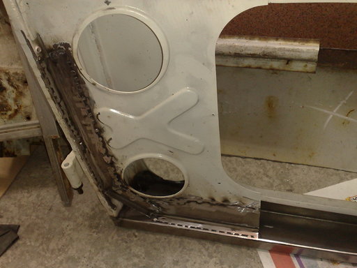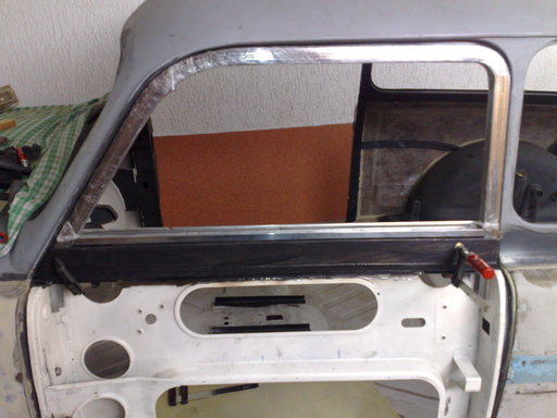Колеги здравейте,Орлине въобще не си разводнил темата,напротив събира се информация,която може да бъде полезна.Относно моята сага с вратите продължава,но вече се вижда края.Смених изгнилите ламарини в горният край под кутиите,грундирах ги, ,препаснах кутиите,защото са много важни,от тях зависи захващането на алуминиевата рамка,разстояние ,луфтове и т.н.Навремето намерих по добра дясна врата от моята и мислех да сложа нея,като разрязах оригиналната,но се установи ,че по добре си ляга неговата врата и сега я възстанових от парчета ламарина,като стане готова ще я пясъкоструя и грундирам прахово.Ето и малко снимки: