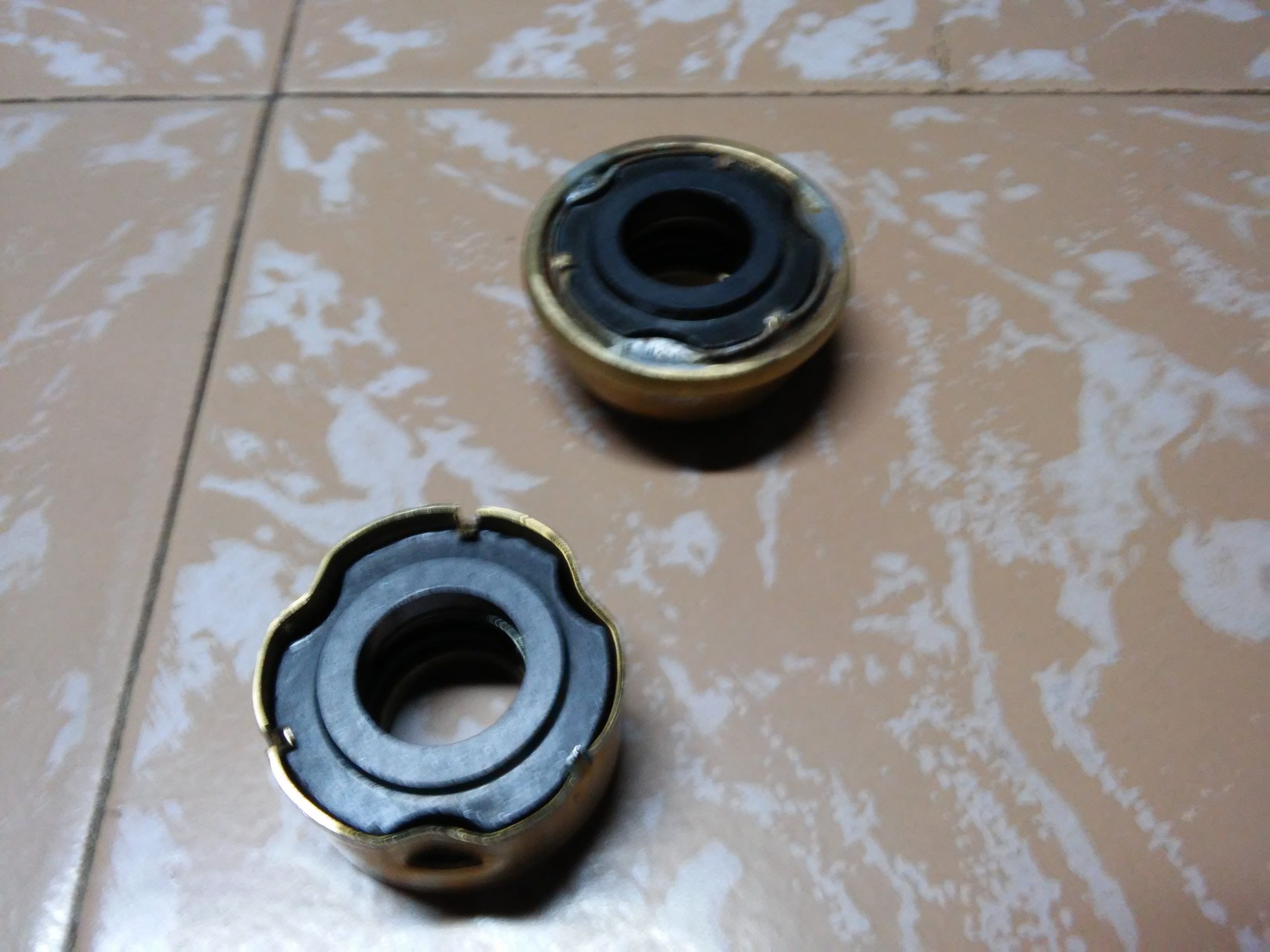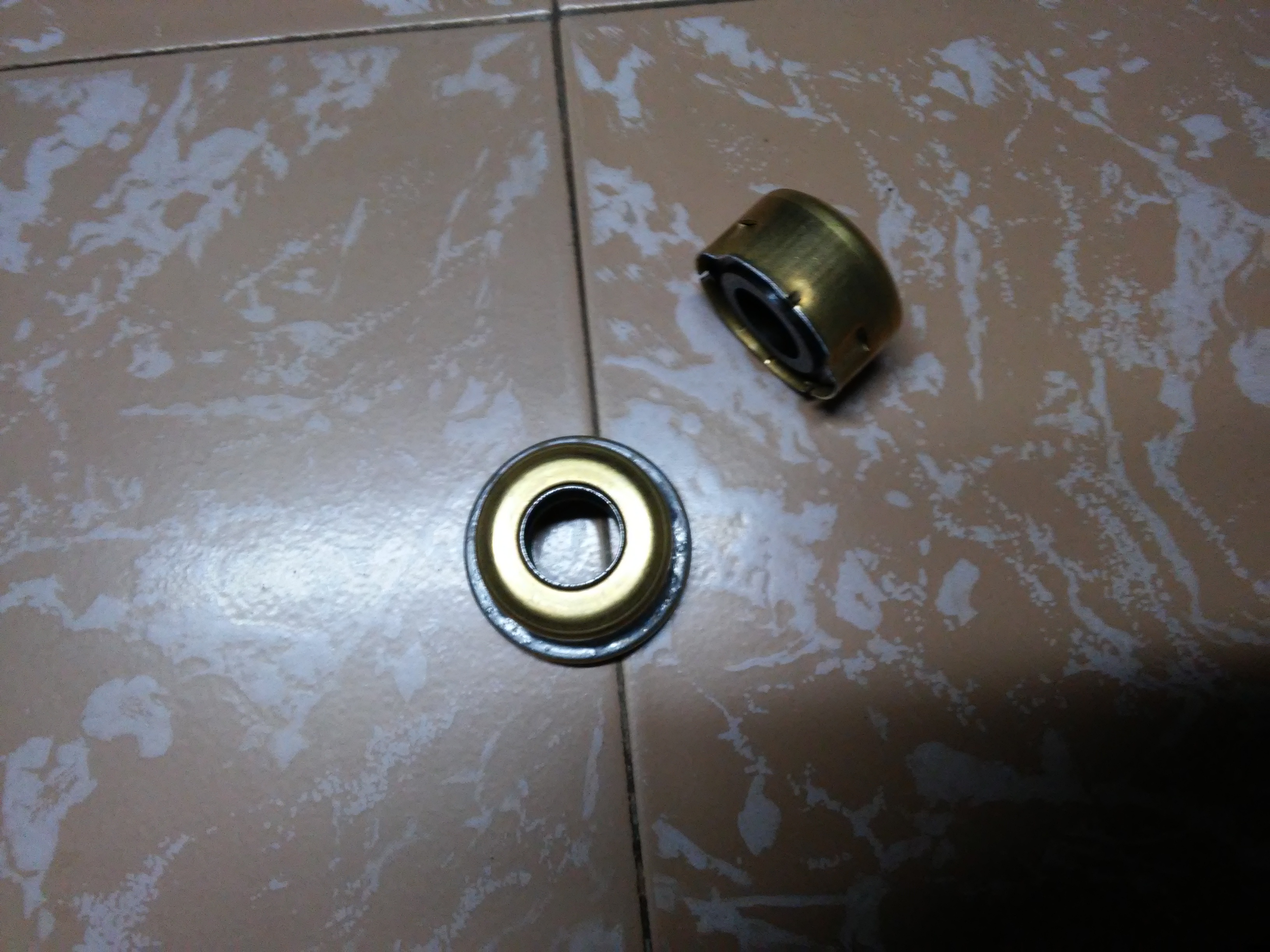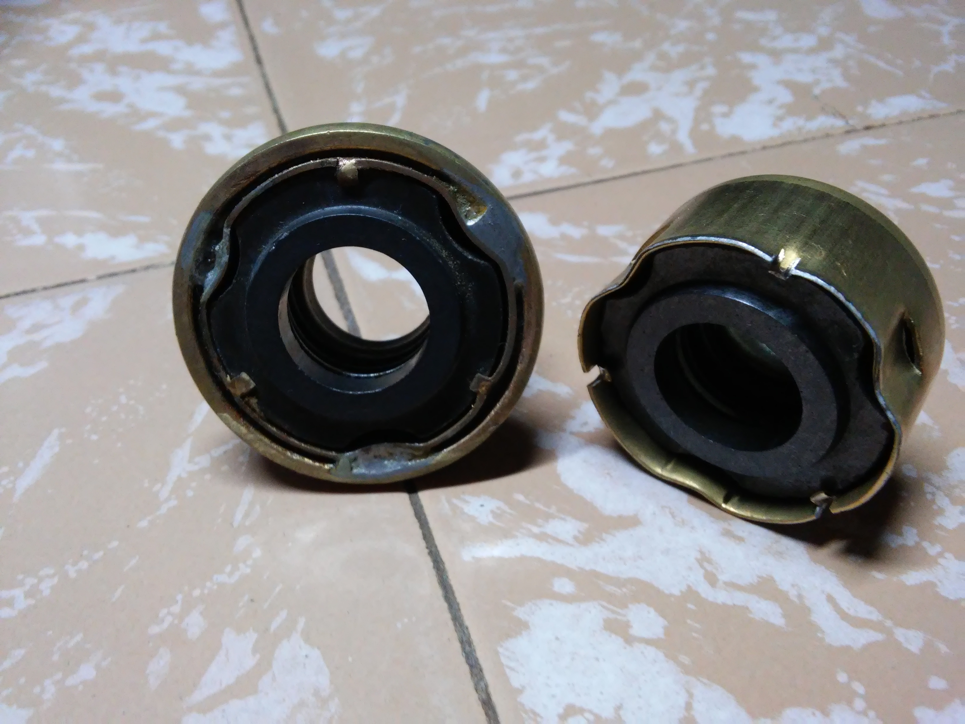 От оригинален счупен фибър за вартбург, изрязахме горната му част, на която се слага уплътнителната гумичка (може би ще стане и с престърган пръстен със същия размер). След това взехме фибъра от лада и го изстъргахме до подкривените палчета, които държат самата графитна част на фибъра му. После запоихме така изрязаната гривна от оригиналния фибър на вартбург на фибъра на лада. Така изготвения фибър сложихме на мястото на счупения - т.е. вътрешния сега е от лада, а външния към перката е оригинален. Гривната на този фибър заедно с гумичката, не може да опре до ограничителната дълбочина, тъй като фибъра е с малко по друг профил - тоест опира в зегерката на лагера - тя го спира, а гумата го уплътнява. Има разстояние от около няколко милиметра от долния край на гумата до леглото, където трябва да опре. Ние не сложихме нищо защото гумата доста добре се захваща и надали ще се изплъзне а и има много малко място отзад и няма накъде да иде. Може евентуално пак да се престърже пръстенче там за да се уплътни.